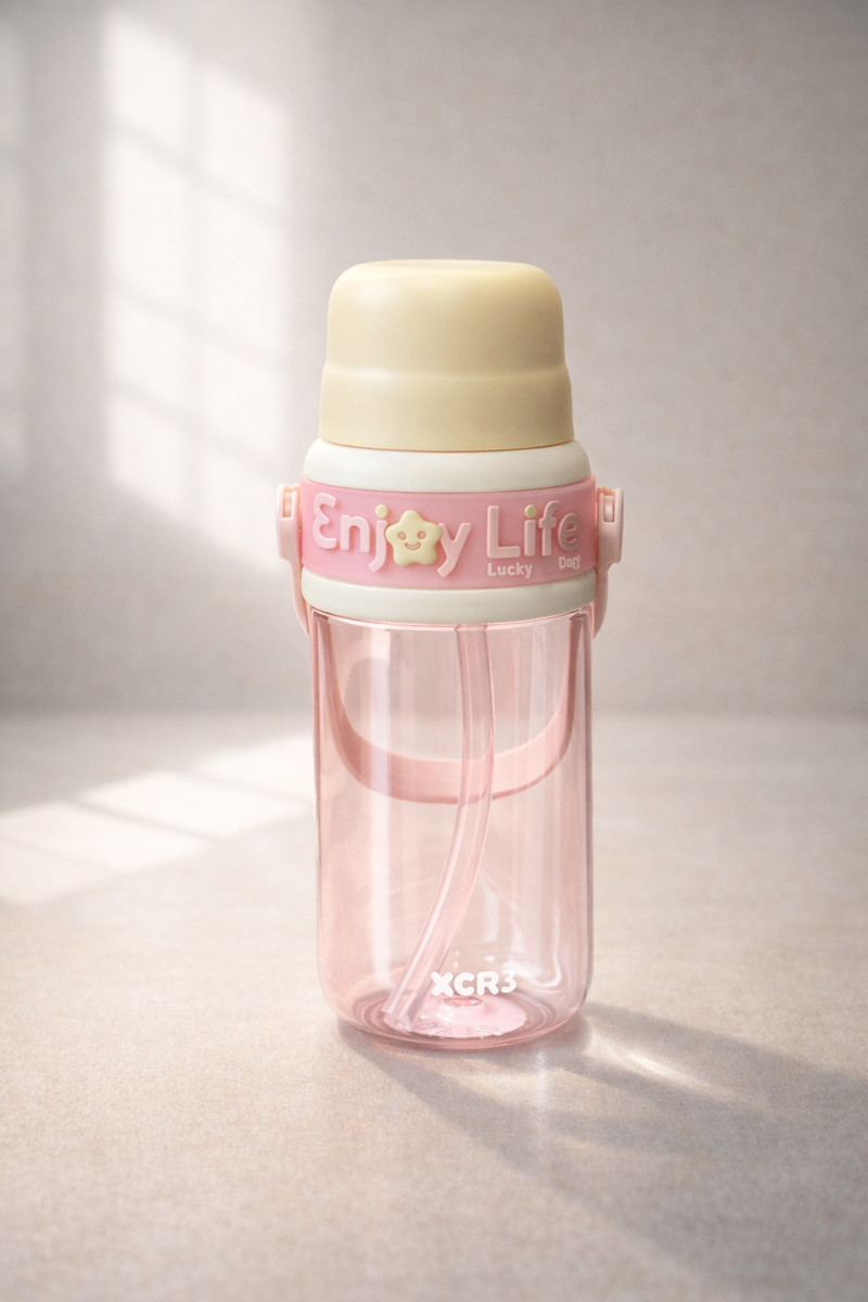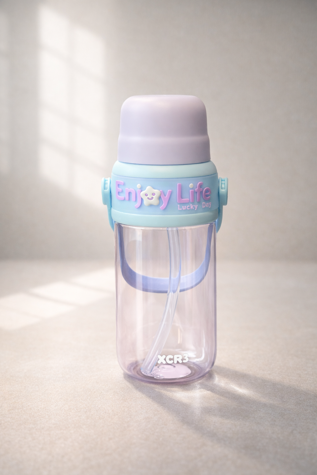 Stickerli Pipetli Kapaklı 750ML Sevimli Polikarbon Matara KW-1013